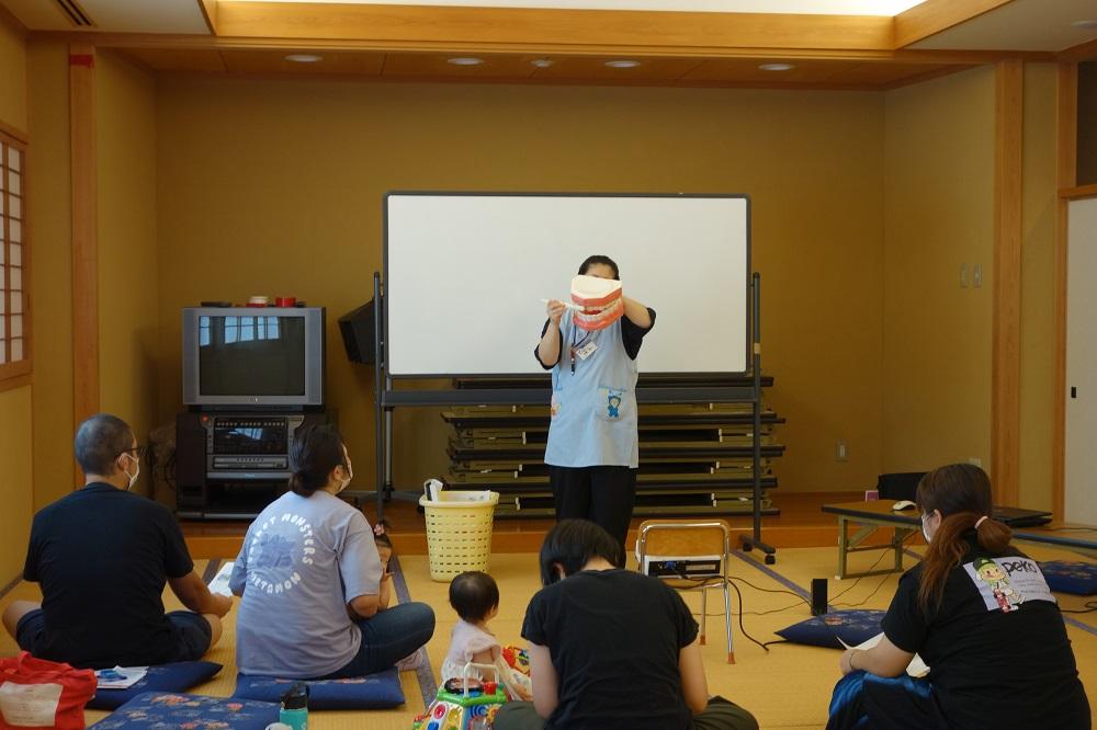 保育士・歯科衛生士・管理栄養士が入れ替えで手遊び、歯のお手入れ方法や離乳食のアドバイスなど、子育てに役立つお話しをさせていただきました!