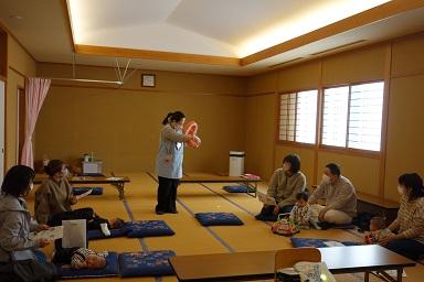 「乳歯のお手入れ・らくらく離乳食」というテーマで歯科衛生士と管理栄養士が講話を行いました。
