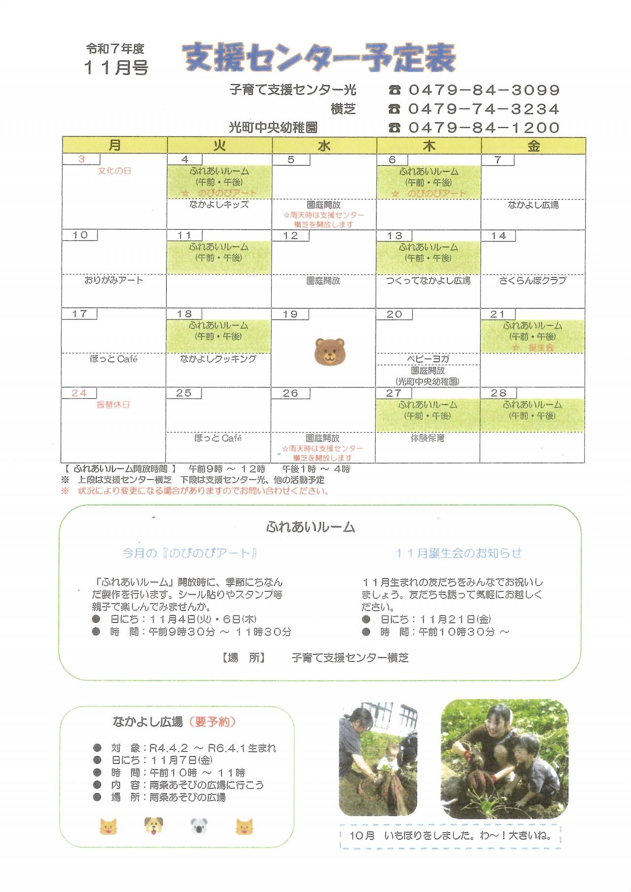 11月の予定表を掲載しました