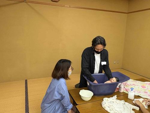 赤ちゃん人形で実際に沐浴体験を実施しました。