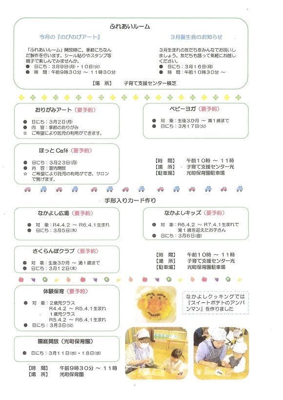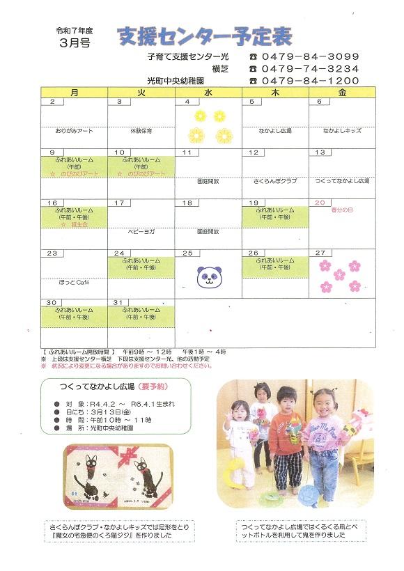 3月の予定表を掲載しました